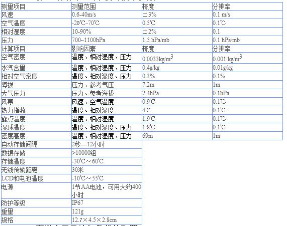 • 測量:蒸發(fā)速率、空氣流量、空氣體積、空氣密度、相對空氣密度、Delta-T等 • 大屏幕,高分辨率,高對比度,數(shù)據(jù)圖表顯示,在明亮的陽光下具有較好的可讀性,具有背光,可以夜晚使用。 • 手持便攜式氣象站,具有數(shù)據(jù)存儲(chǔ)功能,數(shù)據(jù)制表功能。 • 可選由Bluetooth Smart® 提供的LiNK,可以通過無線與手機(jī)或電腦進(jìn)行連接 • 堅(jiān)固耐用(跌落測試符合MIL-STD-810G標(biāo)準(zhǔn)),完全防水(防護(hù)等級IP67),能夠漂浮在水上。 • 配件包含:保護(hù)袋,頸繩,AA鋰電池 2年保修。