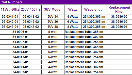 3UV-36美國UVP三波段紫外線燈的參數及應用: